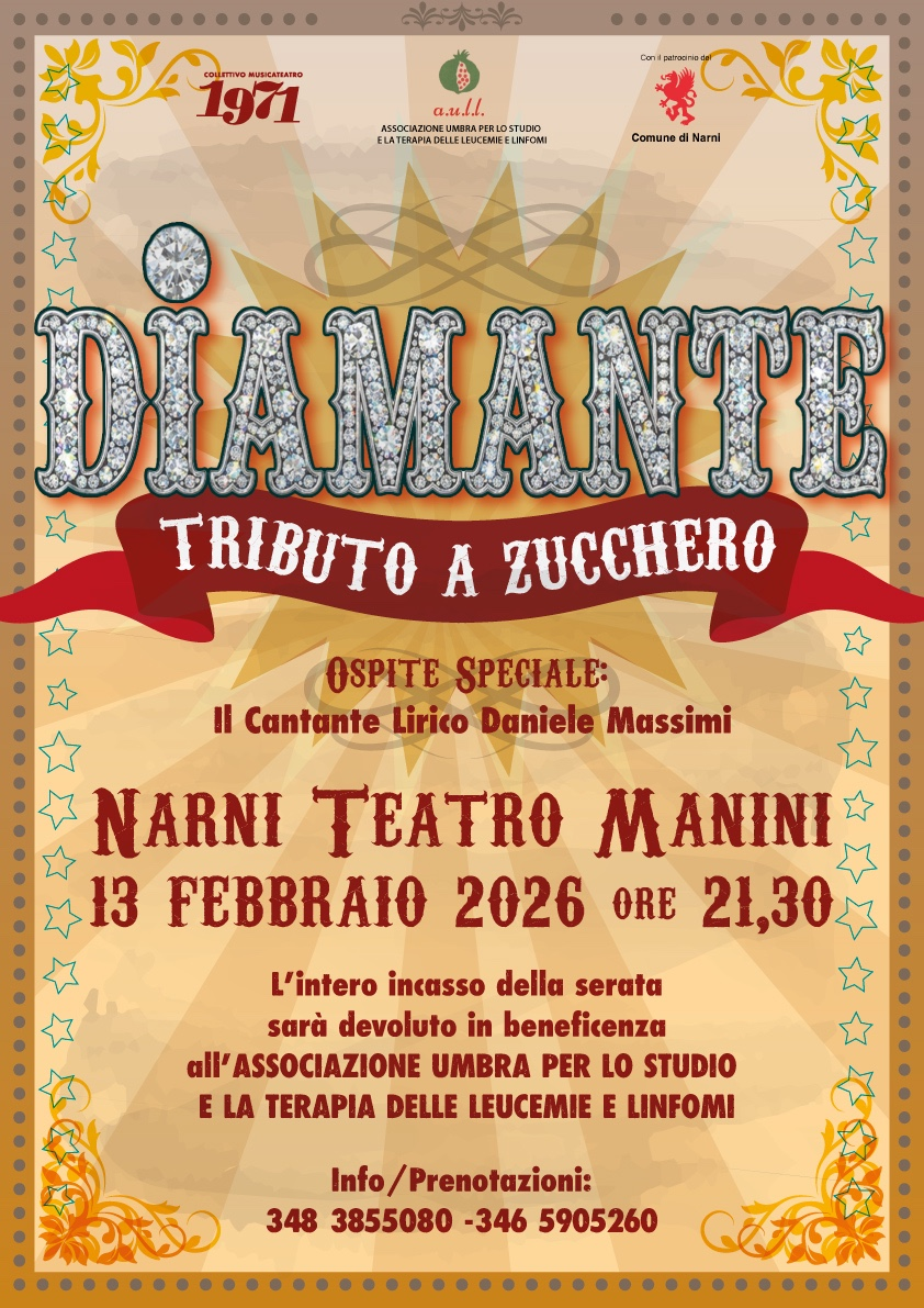 13 febbraio Concerto “Diamante – Tributo a Zucchero” Teatro Manini di Narni